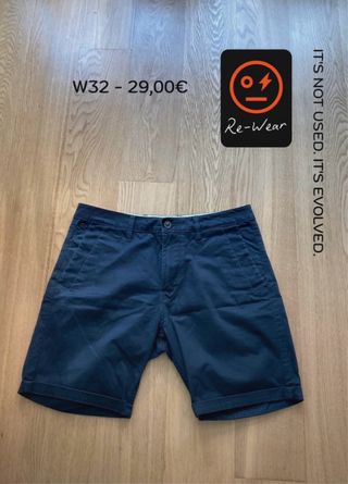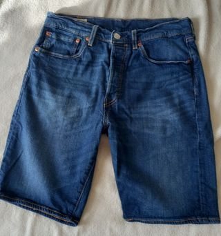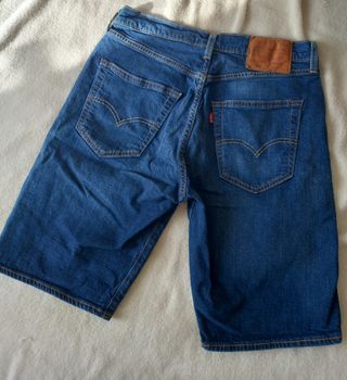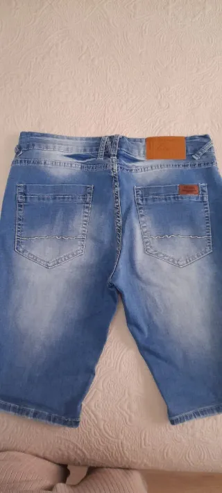 Pantalón vaquero corto estilo bermuda. - Diseño clásico de cinco bolsillos. - Etiqueta de cuero en la parte trasera. Solo lo he lavado una vez .La tela es muy agradable es muy suave y en verano no da nada de calor