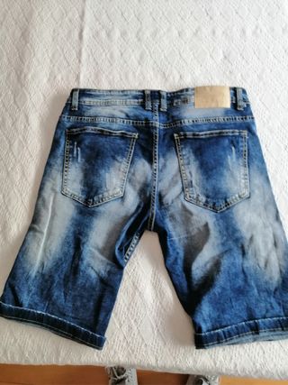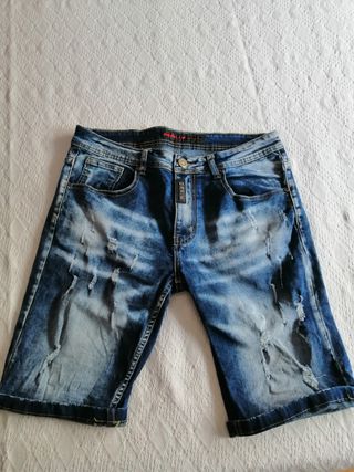 Bermudas vaqueras con un estilo desgastado y rotos. - Cintura con trabillas para cinturón. - Bolsillos delanteros y traseros. - Bajo deshilachado. - Están perfectas lo único la etiqueta trasera gastada por los lavados