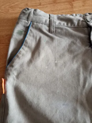 Pantalón escolapios, mucho uso. Tiene algunas manchas. Talla 12. Los dos 8€, el otro era largo y está cortado, está en buen estado. - Detalle de ribete azul en los bolsillos. - Cierre de botón y cremallera. - Trabillas para cinturón.