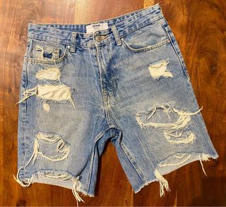 Bermudas vaqueras de Bershka con un diseño desgastado y moderno. Contura: 38 cm Largo: 44 cm - Estilo desgarrado y con rotos. - Tiro alto. - Corte recto.