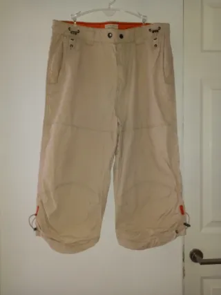 Bermudas de loneta,beige con anclas en azul marino. Talla M. Bolsillos adelante y atras. Muy ponible con bambas. Apenas sin uso. Más en el perfil.
