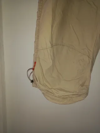 Bermudas de color beige con un diseño moderno y detalles llamativos. - Cintura con trabillas para cinturón. - Bolsillos laterales. - Cordones ajustables en los bajos.