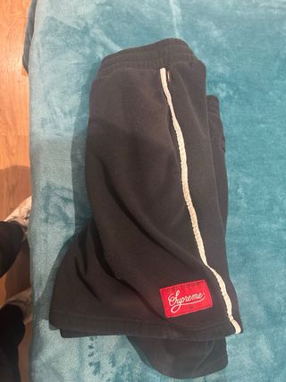 Bermudas de la marca Supreme en color negro. Cuentan con un diseño deportivo y moderno. - Detalle de raya lateral blanca. - Etiqueta roja con logo de la marca.