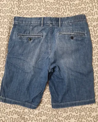 Pantalón vaquero corto estilo bermuda. - Diseño clásico de cinco bolsillos. - Etiqueta de cuero en la parte trasera. Solo lo he lavado una vez .La tela es muy agradable es muy suave y en verano no da nada de calor
