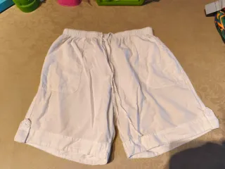 Bermudas de color blanco, cómodas y versátiles. - Cintura elástica con cordón. - Bolsillos laterales. - Detalle de botón en el bajo.