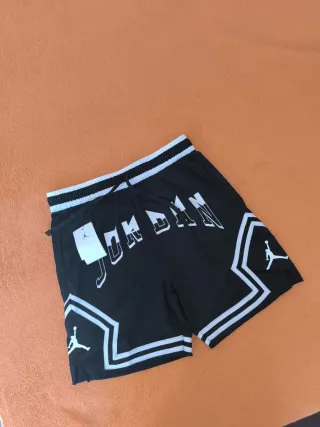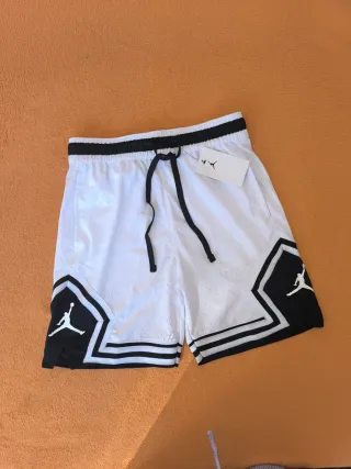 Bermuda deportiva de la marca Jordan. - Diseño de malla transpirable. - Cintura elástica con cordón ajustable. - Detalles de diseño en negro y blanco. - Logo de Jordan en los laterales.