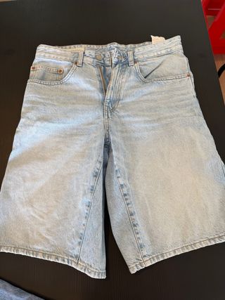 Bermuda vaquera de Bershka en talla S. Un básico para tu armario. - Corte ancho. - Lavado claro.