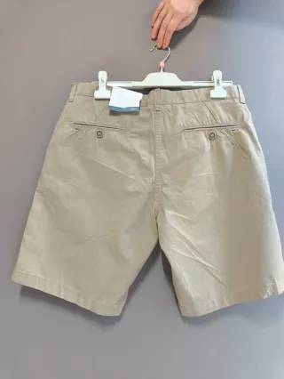 Bermuda de estilo chino para hombre talla 44. - Corte recto. - Cierre de botón y cremallera. - Bolsillos laterales. - Bolsillos traseros. - Etiqueta de marca. - A estrenar