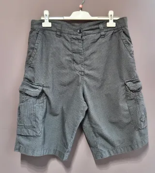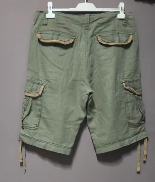 Pantalón bermuda de color verde muy chulo. Está en buen estado. - Corte clásico. - Cierre con botón y cremallera. - Bolsillos laterales.