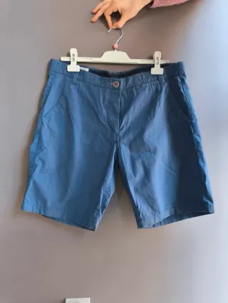 Bermudas de hombre en color azul, perfectas para el día a día. Tejido de algodón sostenible. Tejido stretch. Trabillas. Dos bolsillos laterales. Bolsillo portamonedas. Dos bolsillos de ribete en la parte posterior. Cierre de cremallera y botón. En tienda 30 euros se puede ver en el QR de la etiqueta -- TENGO otro similar publicado color crema, mismo talle con etiqueta -- si compras los dos te ahorras un envio y tenes un descuento :)