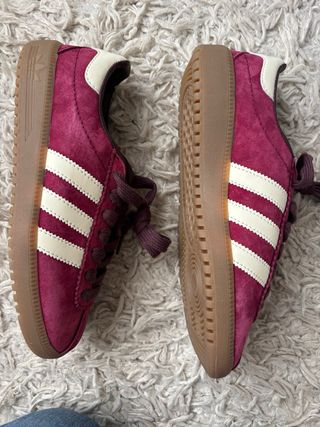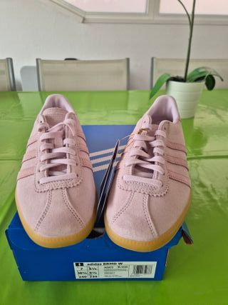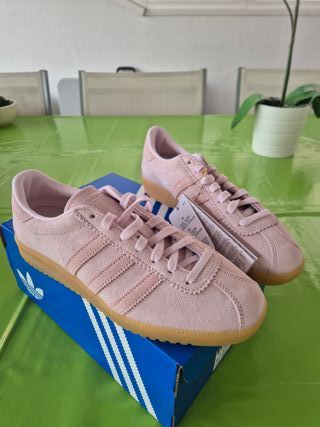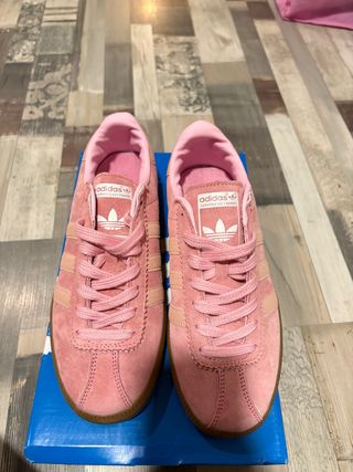 Zapatillas Adidas bermuda rosas, son talla 40 pero dan poca talle sería una 39. Son como las special. Vienen con caja