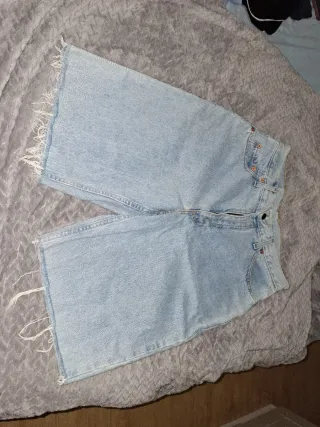 Short vaquero de Zara para mujer, de corte ancho y largo tipo bermuda. Puesto una sola vez, en estado impecable. Denim en tono azul claro, cómodo y fácil de combinar. ▪️ Talla: 46 (XXXL) ▪️ Marca: Zara ▪️ Composición: 75 % algodón Escríbeme ante cualquier duda.