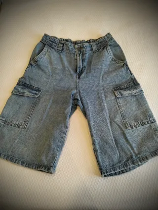 Vaqueros cortos de estilo veraniego, perfectos para días cálidos. Tienen un diseño cómodo y práctico. - Cintura elástica con trabillas. - Bolsillos cargo en los laterales. - Bajo con dobladillo.
