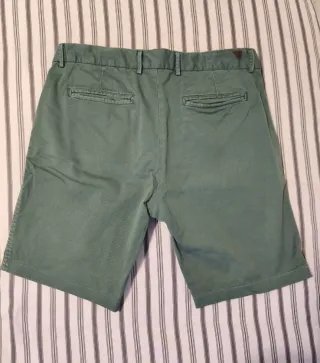 Bermudas de la marca Zara en color verde algo desgastado, es así el color. Un básico para tu armario. - Cintura con trabillas para cinturón. - Cierre de botón y cremallera. - Bolsillos delanteros y traseros.