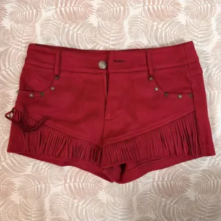 Bermudas rojas con flecos y tachuelas