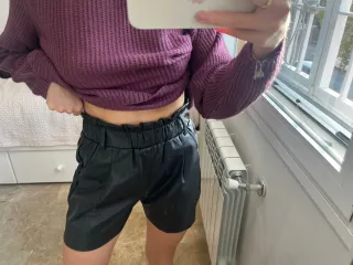 Bermudas de polipiel en color negro. Tienen un diseño moderno con cinturón. - Cintura alta. - Cierre con botón y cremallera. - Bolsillos laterales.