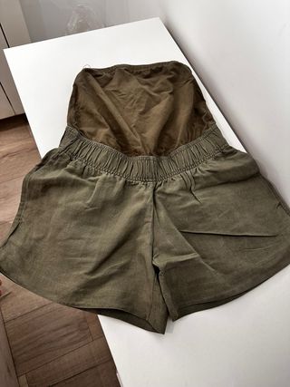 Pantalón premamá corto lino verde Talla XS