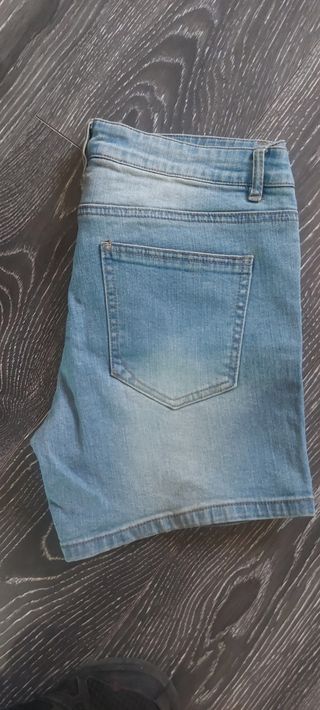 Pantalón corto de tejido vaquero o demin con elastano.Se ajusta bien al cuerpo y es de tacto suave y agradable.Talla como una 42-44. Casi sin uso,sin manchas ni roces.
