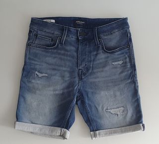 Bermudas vaqueras de la marca Jack & Jones. - Diseño desgastado con rotos. - Tiro medio. - Cierre de botón y cremallera.