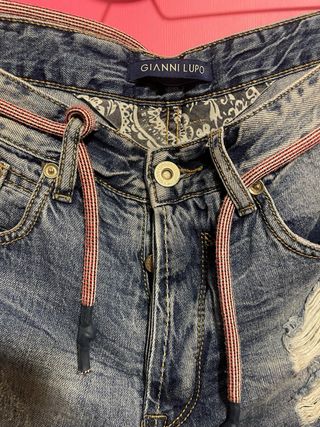 Vendo shorts de mezclilla de hombre de la marca West Original & Co. Son de color blanco, estilo bermuda, con los bajos doblados y un corte moderno. Ideales para los meses de calor. El logo en el botón dice "Jeans" en un círculo. Estado: Usados, en muy buenas condiciones.
