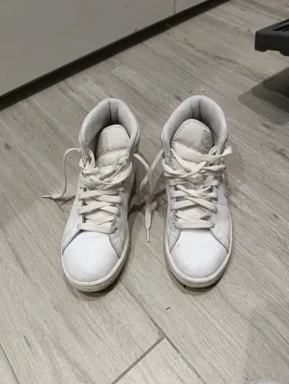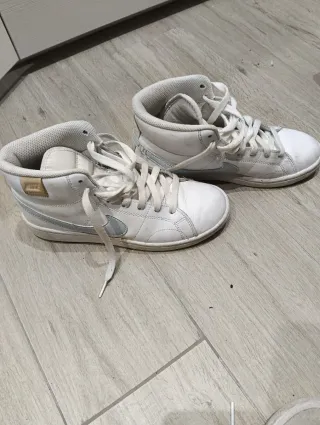 Zapatillas deportivas altas de la marca Nike precio por los 2 pares unas son 37,5 y otras 38 - Color blanco con detalles plateados. - Cierre con cordones.