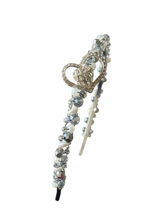 Diadema adornada con un corazón y detalles brillantes. - Diseño con corazón central. - Decorada con perlas y cristales.