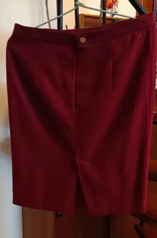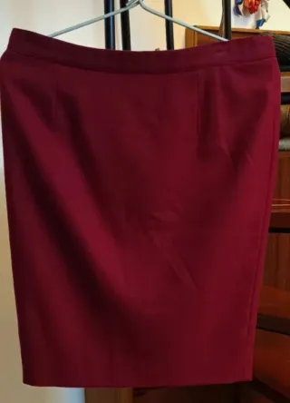 Elegante falda de paño en un bonito tono burdeos. Su diseño clásico la hace versátil para diferentes ocasiones. -Cintura85 ,cadera 97,largo 58 - Material: Paño - Color: Burdeos