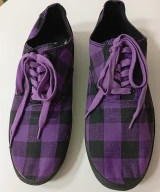 Tenis de lona a cuadros lila.