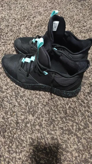 Zapatillas Nike Paul George 3 'Crater'. - Diseño en color negro con detalles en turquesa. - Cierre de cordones. - Tirador en la lengüeta. Como nuevas, usadas 3 veces en pista interior.