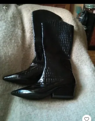 Botas altas de Unisa en color negro y talla 37. Con un diseño elegante y moderno. - Acabado imitación piel de cocodrilo. - Cremallera lateral para facilitar su uso. - Tacón de bloque con detalle. - Punta fina.