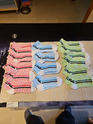 Lote de 15 pares de calcetines Fila a estrenar, 3 colores, rosa,verde y azul, buena calidad, muy cómodos talla 36-41
