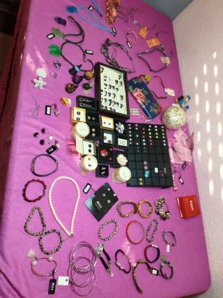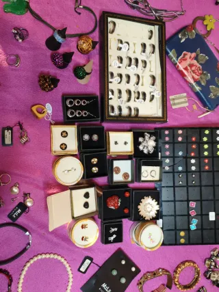 Lote variado de bisutería y joyas. Hay de todo. Se vende tal cual laa fotos. No se admiten devoluciones. - Collares. - Pulseras. - Anillos. - Pendientes. - Broches. - Cajas para joyas.
