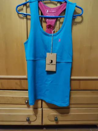 Camiseta deportiva de tirantes para mujer. - Diseño con paneles laterales en contraste. - Cuello redondo. - Tejido técnico transpirable.