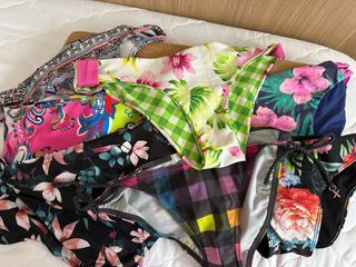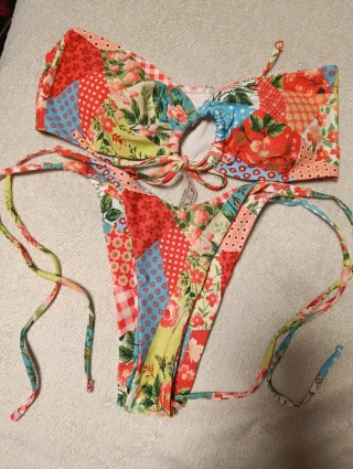 Conjunto de bikini con diferentes estampados... patchwork, vichy, floral Los vendo juntos en lote o por separado 5 euros los conjuntos y 3 las partes de arriba o de abajo Las tallas son M o L Preguntame sin compromiso