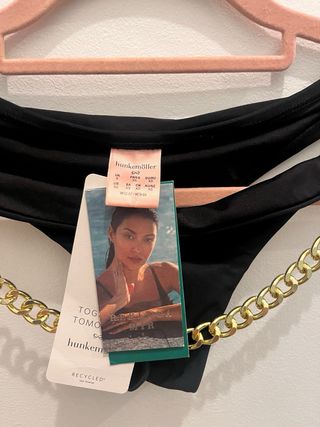 Nueva con etiquetas Braguita de biquini negra de la marca Hunkemoller. Coleccion de Rebecca NIR con detalle de cadena dorada.