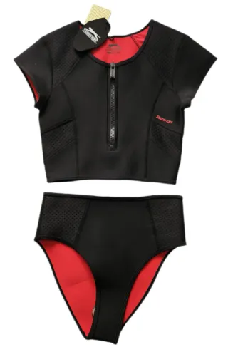 Conjunto de bikini de neopreno con un diseño moderno. - Top con cremallera frontal. - Paneles laterales con microperforaciones. - Braguita de talle alto.