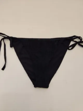 Bikini negro con detalle fruncido en la parte delantera y lazos ajustables en los laterales. Muy cómodo y una textura suave. - Diseño fruncido. - Lazos laterales ajustables.