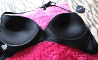 Braguita de bikini en color negro con detalles de cordones rosas en los laterales. - Diseño con cordones ajustables. - Tejido cómodo y elástico.