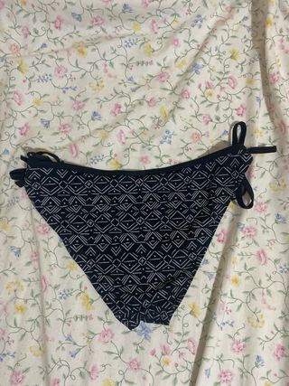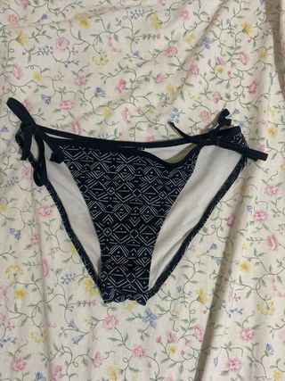 Braguita de bikini con un bonito estampado floral. - Unidad: 4,90 € Los dos; 9€ - Diseño de tiro bajo. - Cordones laterales para ajustar. - Estampado de flores en tonos tierra y grises sobre fondo blanco.