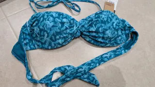 Bikini con un bonito estampado floral en tonos azules y verdes. Perfecto para disfrutar del sol. -Top bandeau - Diseño de flores azules y verdes. - Cintura 30