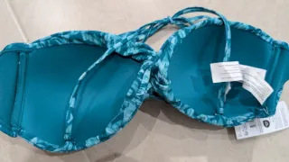 Conjunto de bikini de dos piezas en un vibrante color turquesa. - Sujetador con copas. - 2 Braguita (una con etiqueta) talla L. - Detalle de cuentas en los tirantes del sujetador.
