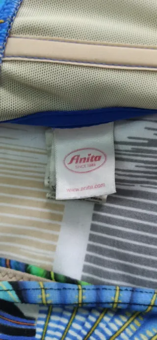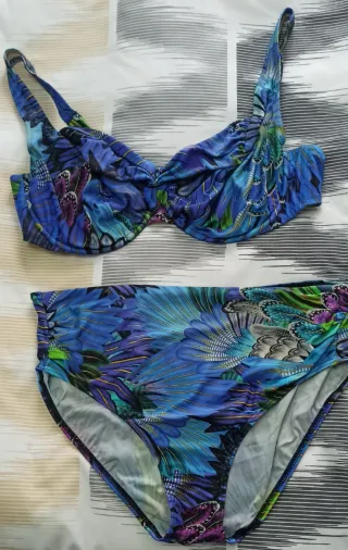 Conjunto de bikini con un vibrante estampado, marca ANITA, talla 110 copa C, la parte de superior es como un sujetador con hebilla en sus tirantes. - Diseño con escote tipo balconet. - Braguita de corte clásico. - Tejido elástico y cómodo.