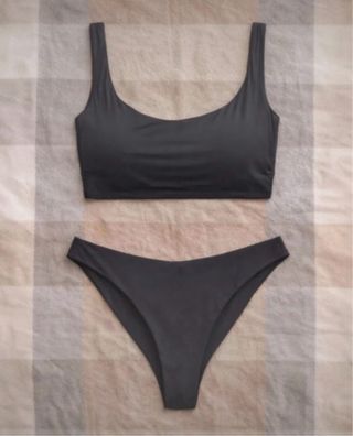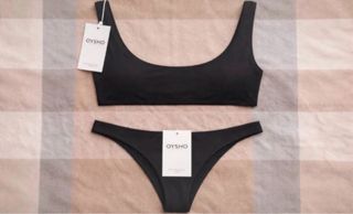 Conjunto de bikini deportivo de la marca Oysho. El top es de corte deportivo y la braguita es de estilo brasileño. - Tejido elástico y cómodo. - Diseño liso. Talla S Nuevo con etiqueta