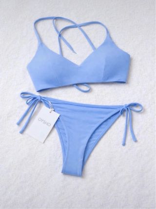 Conjunto de bikini de dos piezas en un bonito tono azul claro. - Etiqueta de la marca Oysho. nuevo con etiqueta