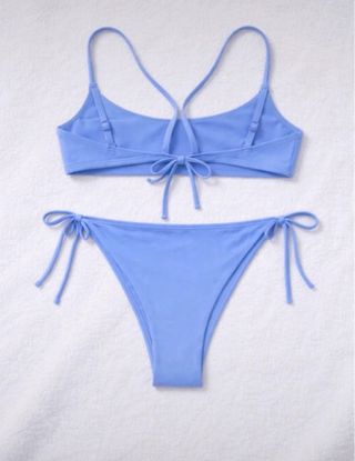 Bikini de color azul con tiras para atar. - Diseño con escote. - Tiras ajustables. Venta en persona