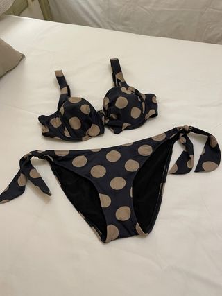 Conjunto de bikini con estampado de lunares. - Parte superior con copas. - Braguita con lazos laterales ajustables.