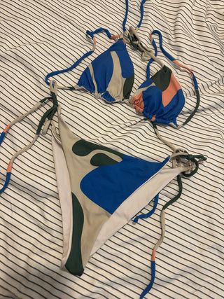 Conjunto de bikini de la marca Oysho. - Parte superior con tirantes finos. - Braguita de corte brasileño. Parte de arriba M Parte de abajo S Precio original: 49€.