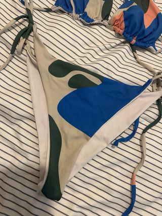 Conjunto de bikini con un vibrante estampado floral. - Diseño de tirantes cruzados en el top. - Braguita de corte brasileño. - Tejido elástico y cómodo. nunca lo usé me quedó grande