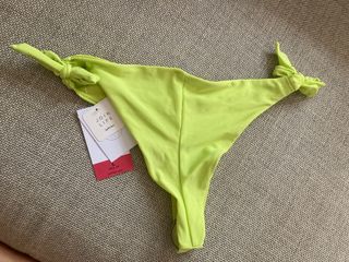 Braguita brasileña verde lima o pistacho de la marca Lefties. Es de la talla L y está totalmente nuevo con etiquetas, me lo compré porque no tenían mi talla, pero como no me va bien, no lo pude usar. Es ajustable por los laterales. Se entrega en mano en Poblenou de Barcelona o bien se hacen envíos mediante Wallapop.