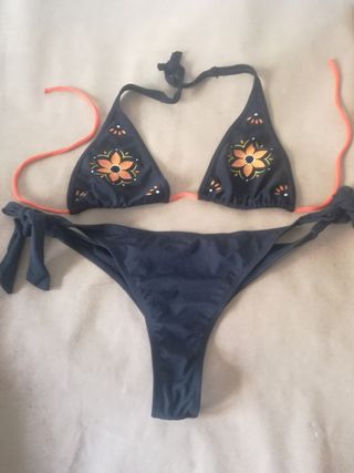 Bikini estampado bordado tropical talla S